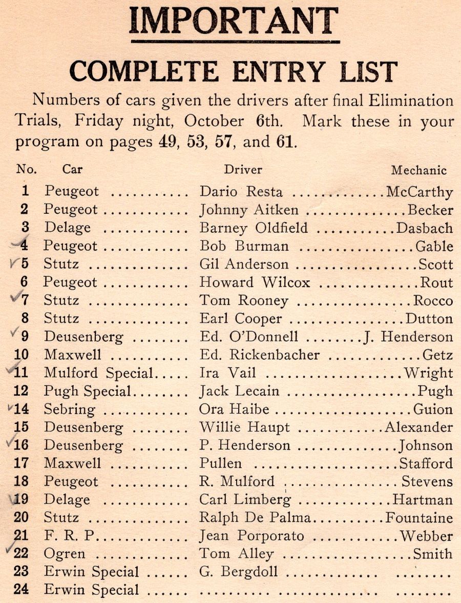 1915 AAA Sheepshead Bay Astor Cup Entry List