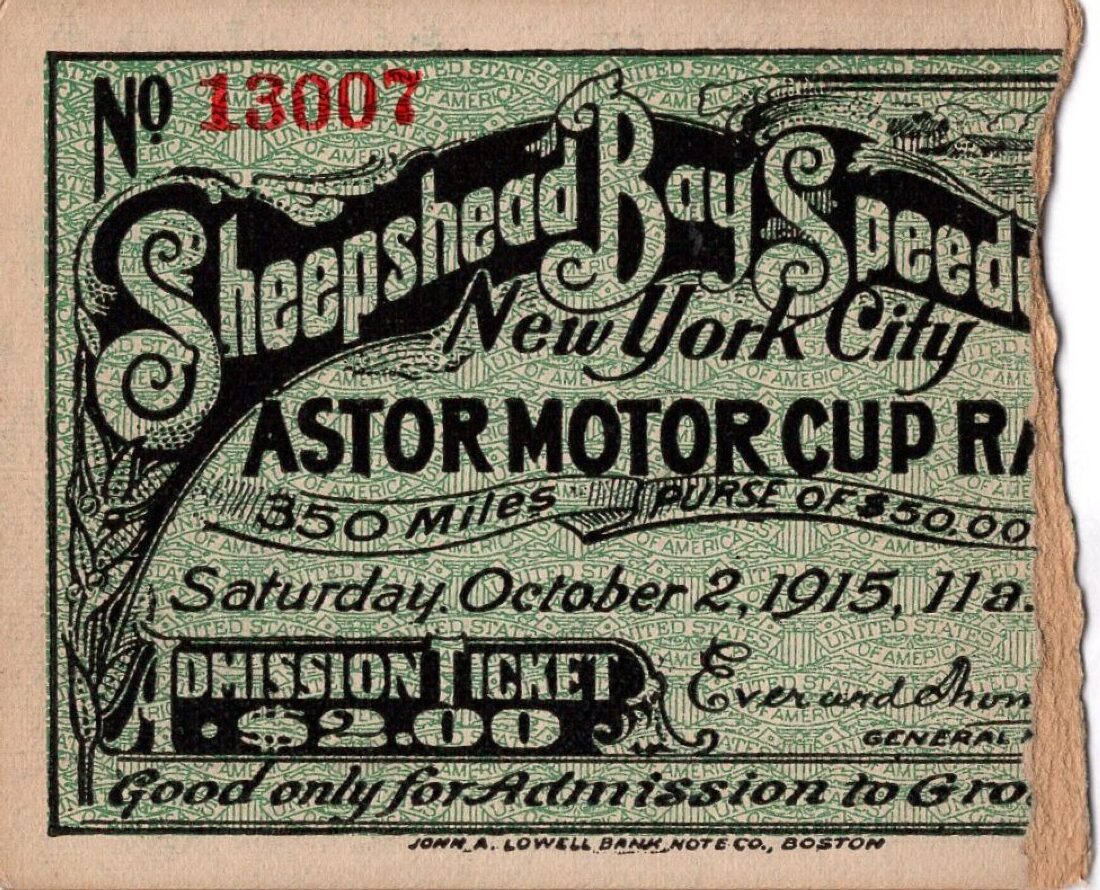 1915 AAA Sheepshead Bay Astor Cup Ticket Stub – Front