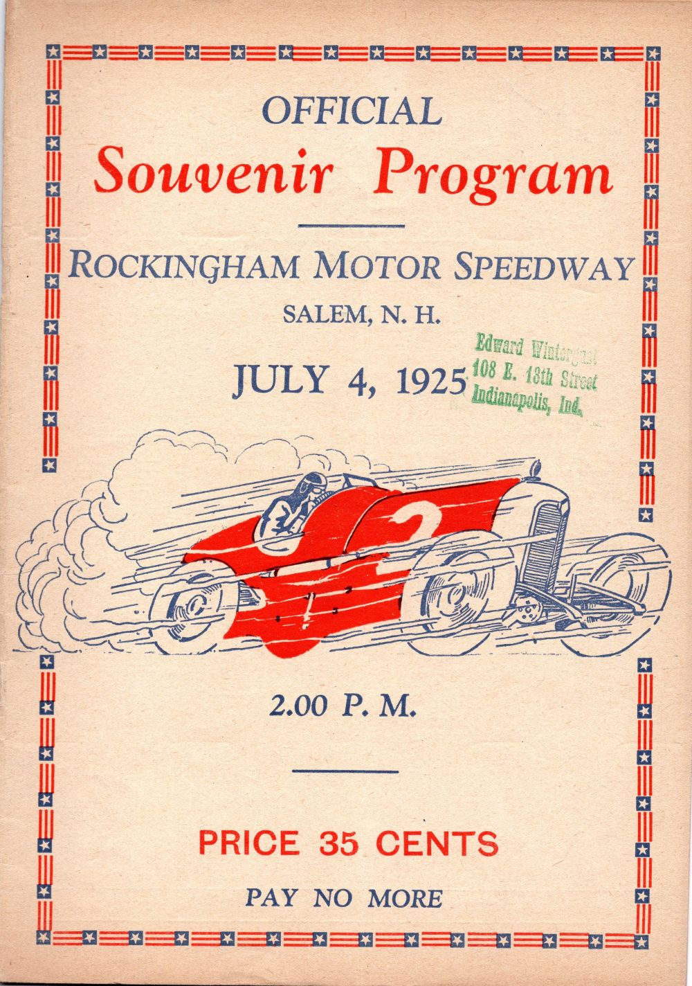 1925 AAA Rockingham Motor Speedway Independence Day Program Front Cover