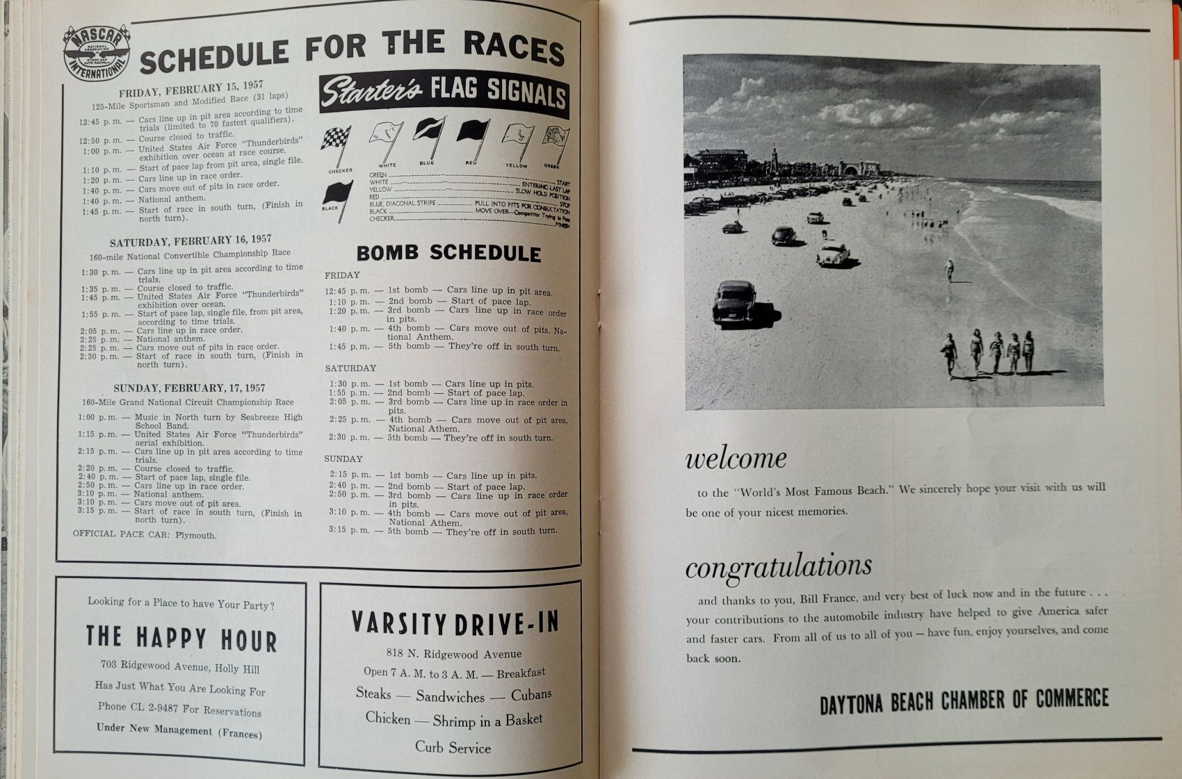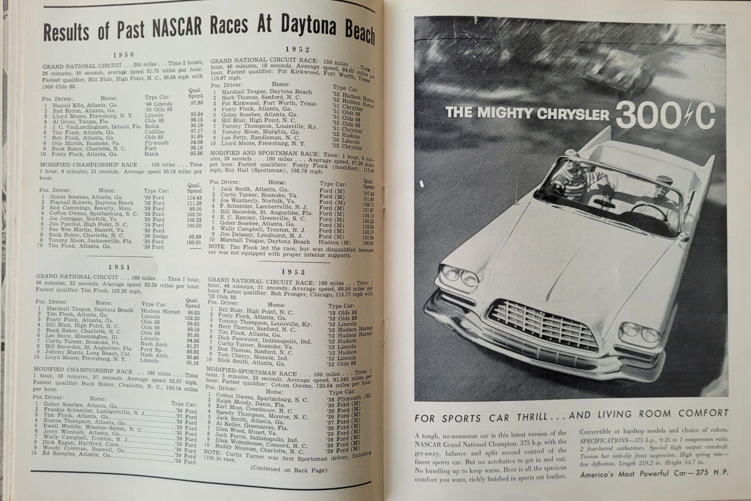 The 1957 NASCAR Grand National race at the Daytona Beach and Road Course was a landmark event in the sport’s early evolution, contested over 160 miles on the 4.1-mile beach-and-road circuit. A full field of 57 cars started the race in front of an estimated 35,000 spectators, with Banjo Matthews claiming the pole position. The race itself was dominated by Cotton Owens, who led 30 of the 39 laps to earn his first Grand National victory—and Pontiac’s first win in the series—collecting $4,250. Johnny Beauchamp finished second almost a minute behind, followed by Fonty Flock in third, Buck Baker in fourth, and Marvin Panch rounding out the top five. The event was also notable for its speed, as Owens averaged just over 100 mph, underscoring the rapid advancements in stock car racing during the late 1950s.