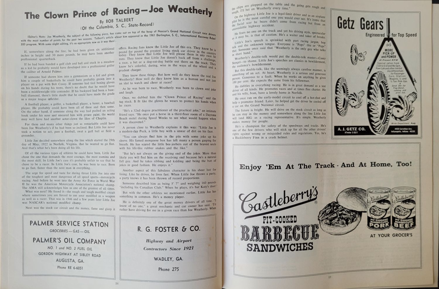 1963 NASCAR Augusta 510 Program - Joe Weatherly